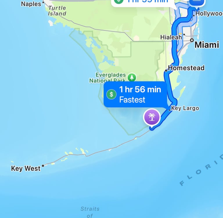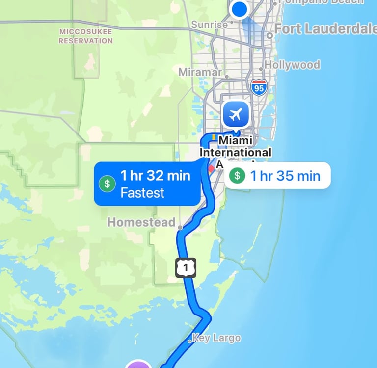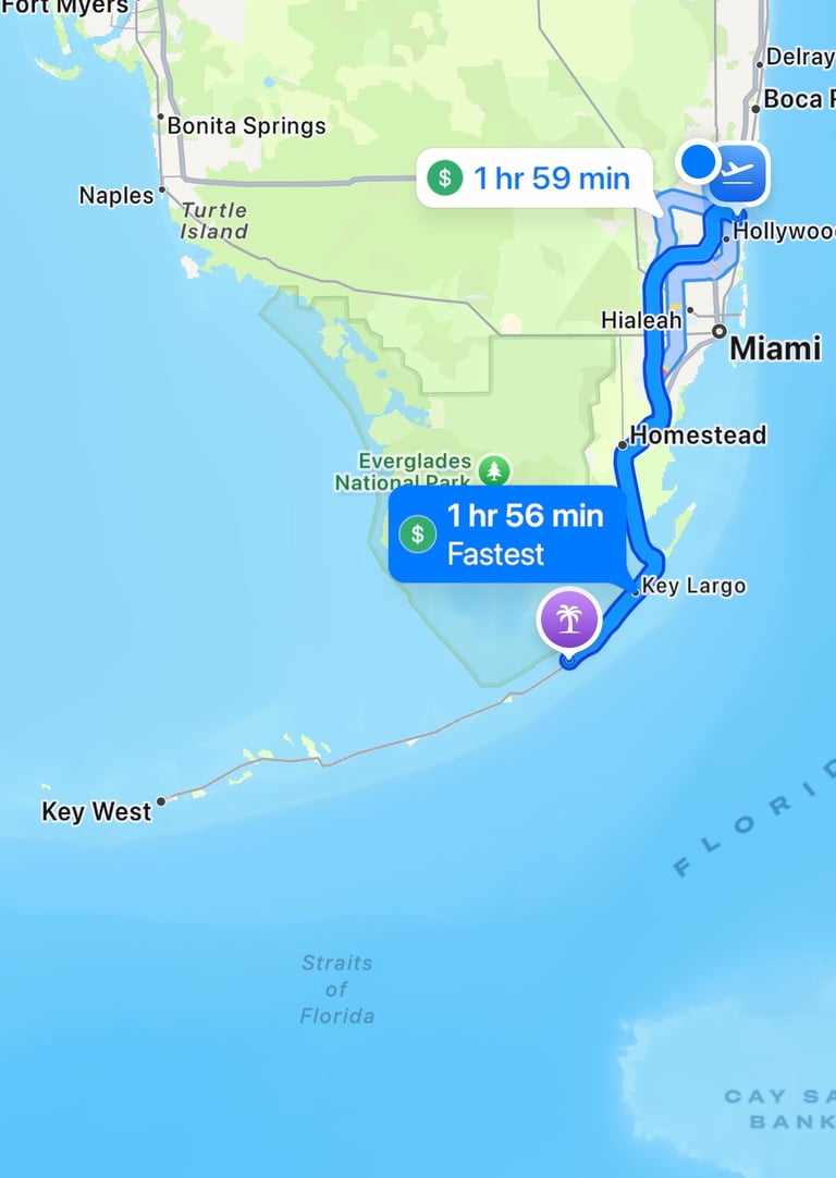 ~1.5 hours from airport to Islamorada, FL